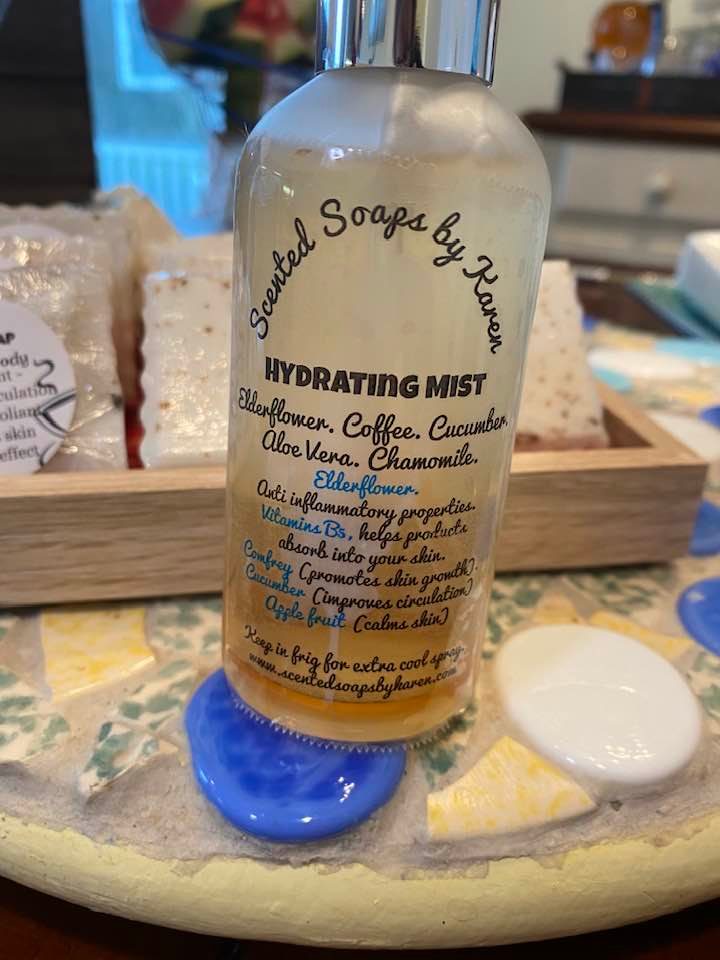 Hydrating Mist. Coffee with Elderflower, Chamomile and Aloe Leaf, cucumber