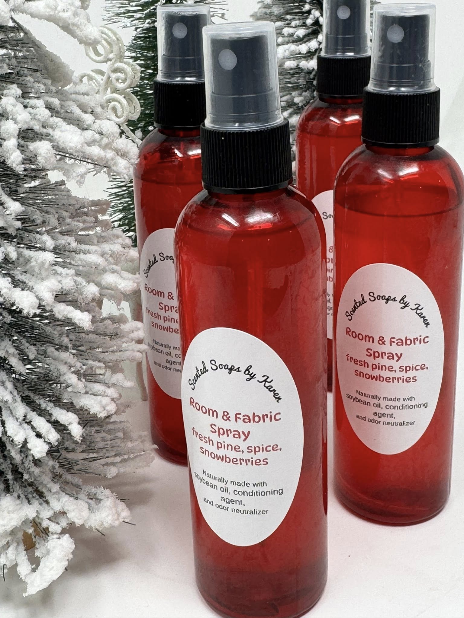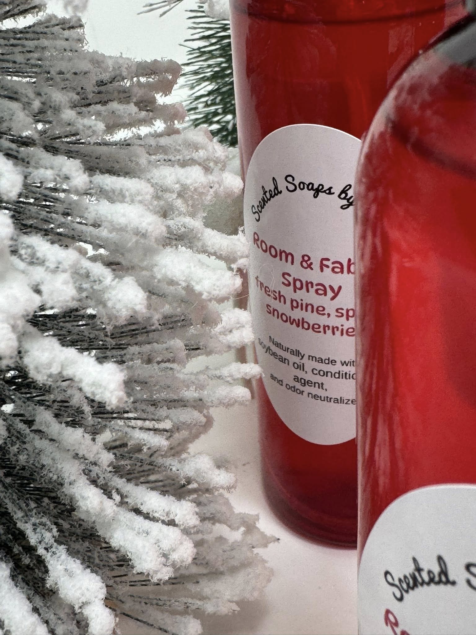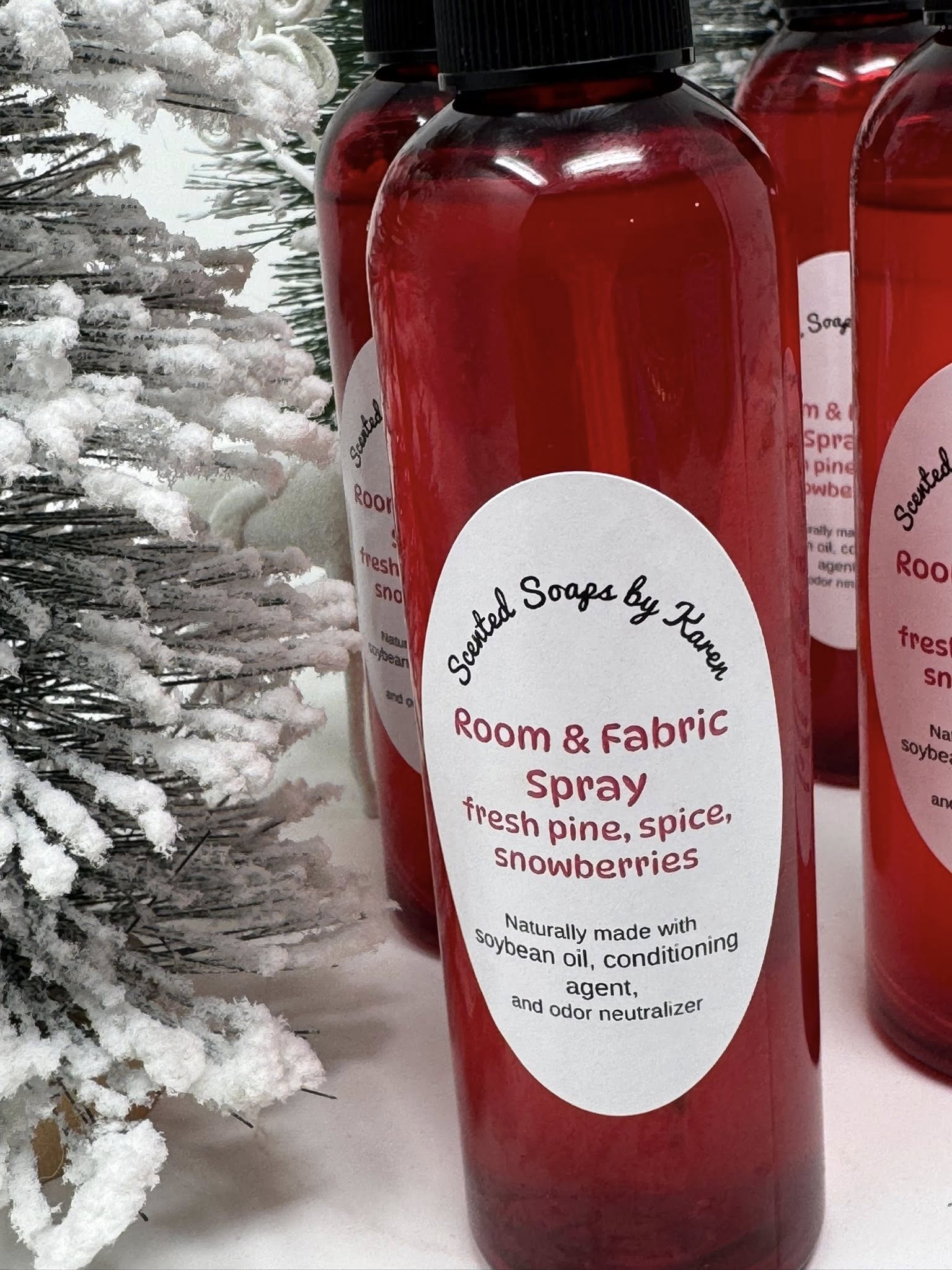 Fresh pine. Spice. Snowberries Room and Fabric Spray. Snowberries throw off a wintergreen scent.