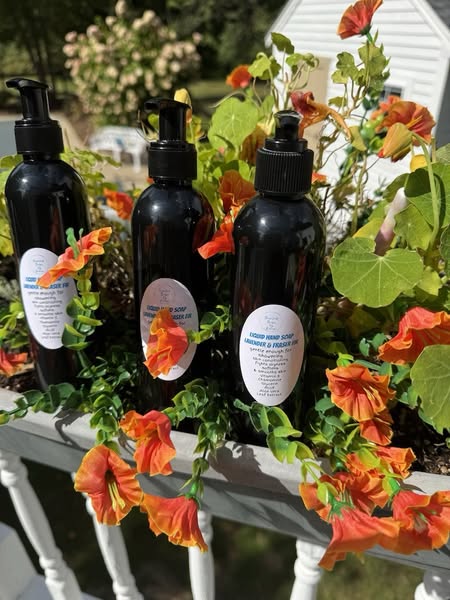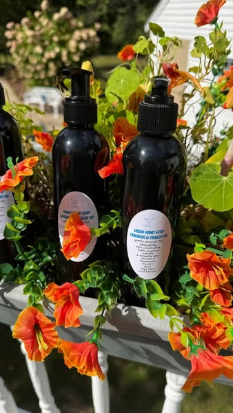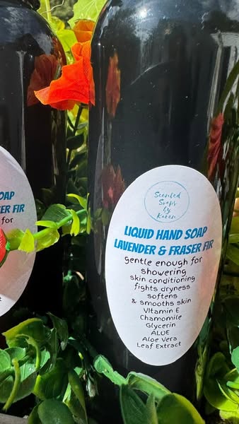 Lavender and Fraser Fir Liquid HAND SOAP. Gentle enough to use in the SHOWER. And the most perfect SHAMPOO. Large bottle, 12 ounces