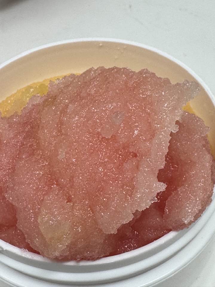 Made with very fine raw sugar, vitamins E, B5 & C. B5 helps products absorb into your skin. E is a natural preservative. Vitamin C is wonderful for lines, for damaged skin, and finally adds skin-brightening to your face.